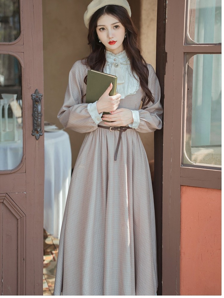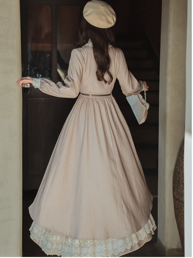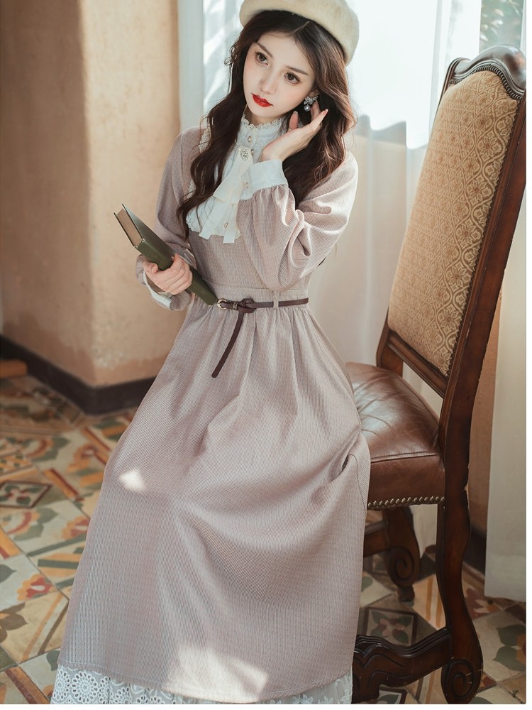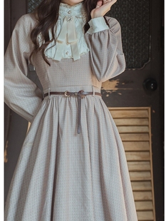 连衣裙 中长款 苏浅慕颜欧式 宫廷少女秋冬复古蕾丝拼接收腰古董洋装