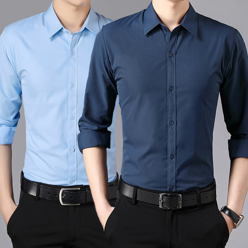 男士 衬衫 黑色衬衣修身 商务正装 男上班寸衣 春秋款 打底纯色薄款 长袖