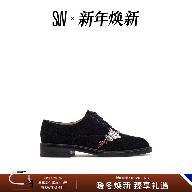 2025秋新款 布洛克中粗跟皮鞋 HL257112 系带牛津鞋 哈森漆皮德比鞋