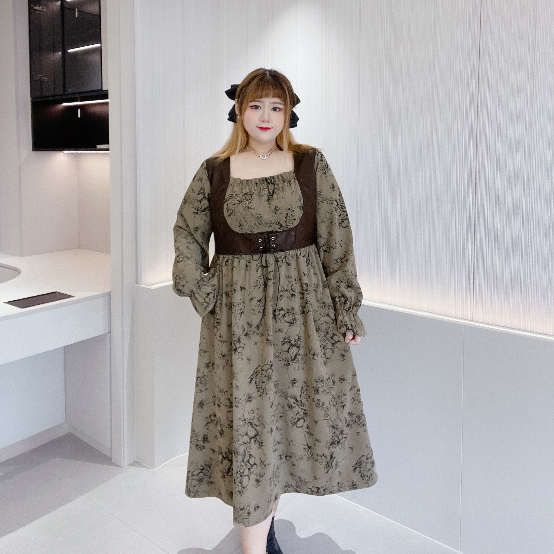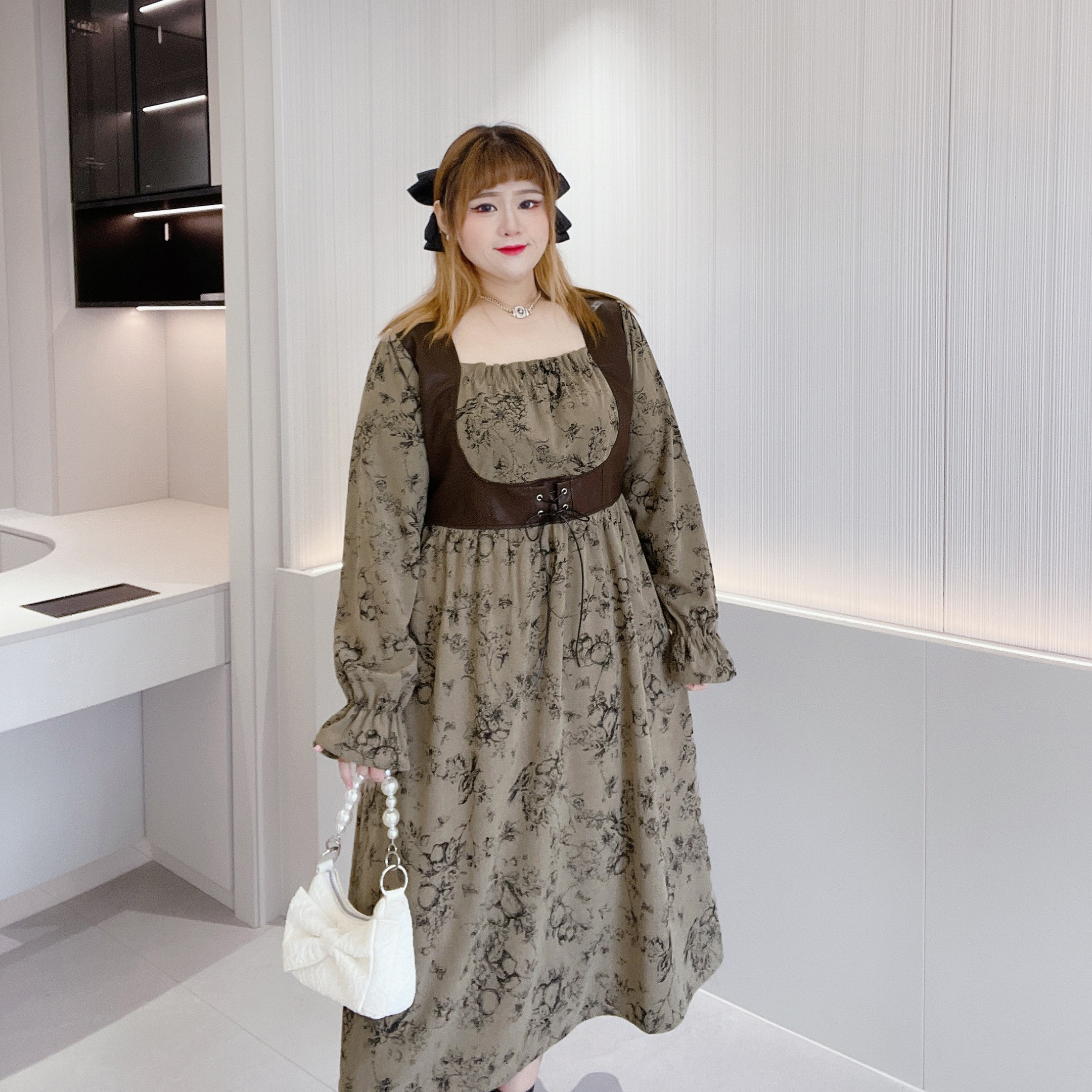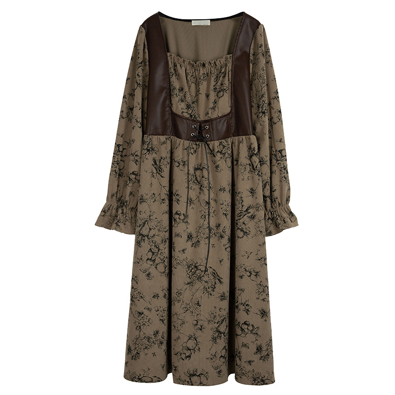 喇叭袖 韩国chic春季 复古木耳边立领宽松长款 法式 百褶连衣裙女 新款