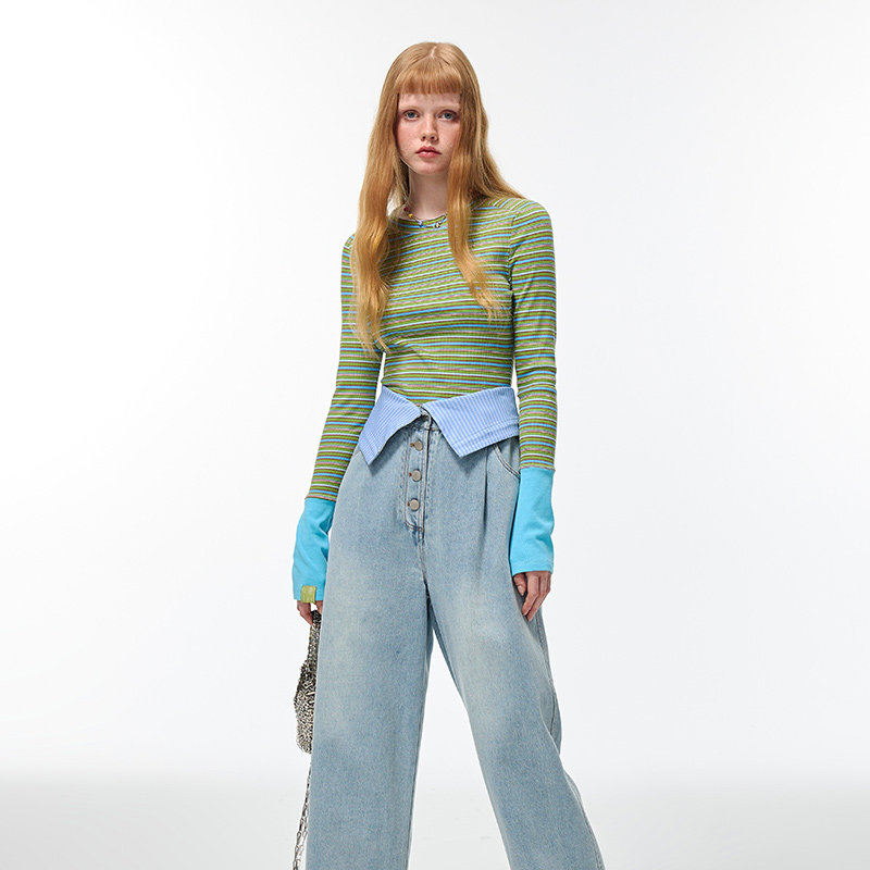 针织打底衫 女士彩条撞色袖 301261 Sandra条纹系列 Alexia