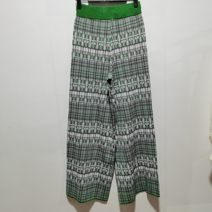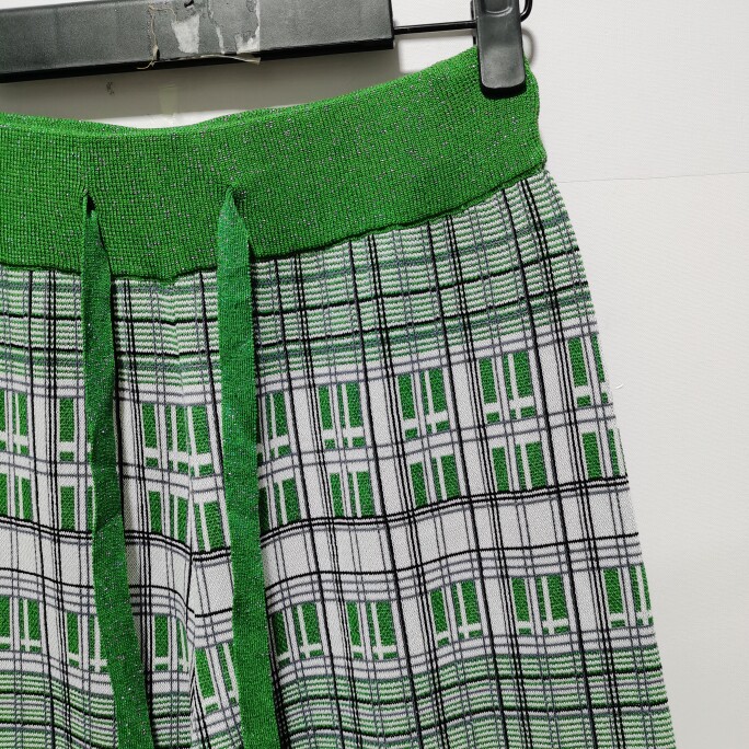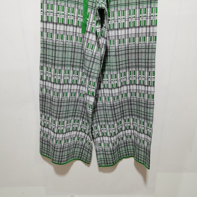 格纹印花高腰针织阔腿裤 盐系休闲减龄时尚 D998 新款 B去标2023春装