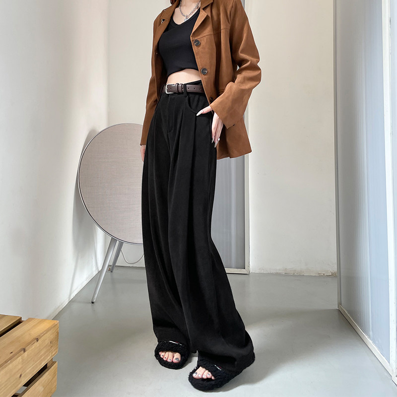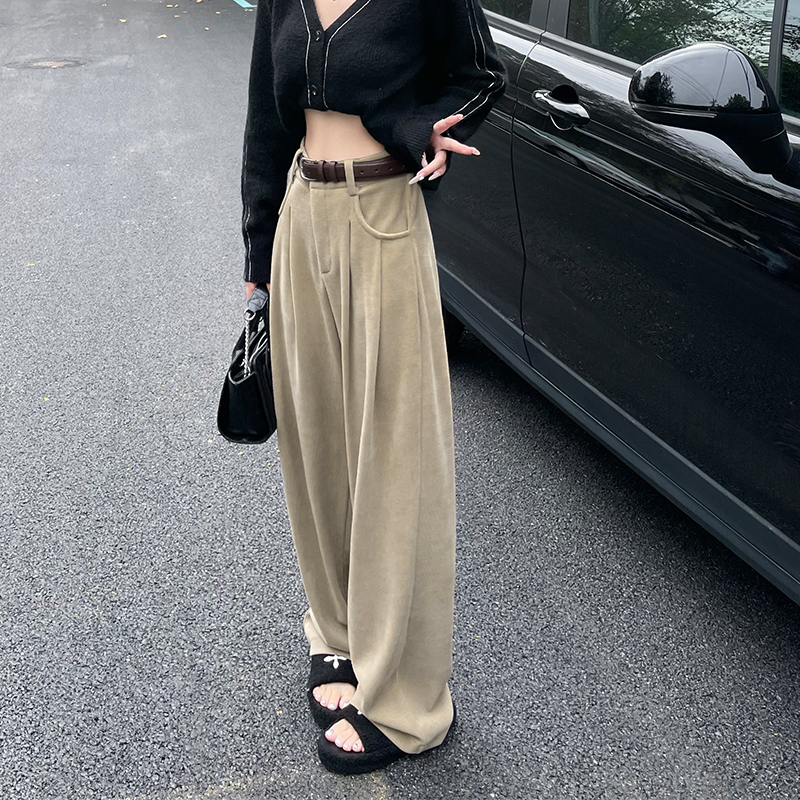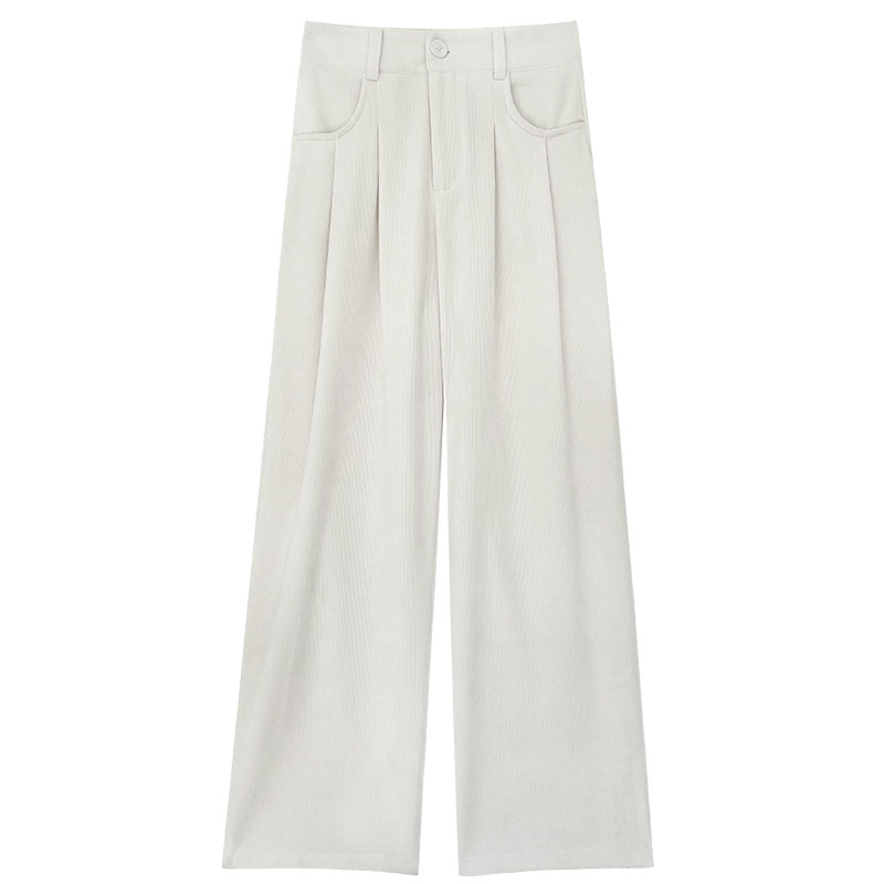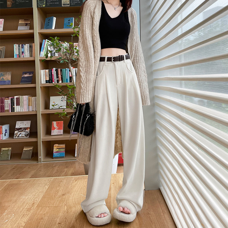 浅色糯米休闲裤 子 女秋冬加绒胖妹妹mm高腰宽松显瘦梨型身材阔腿裤
