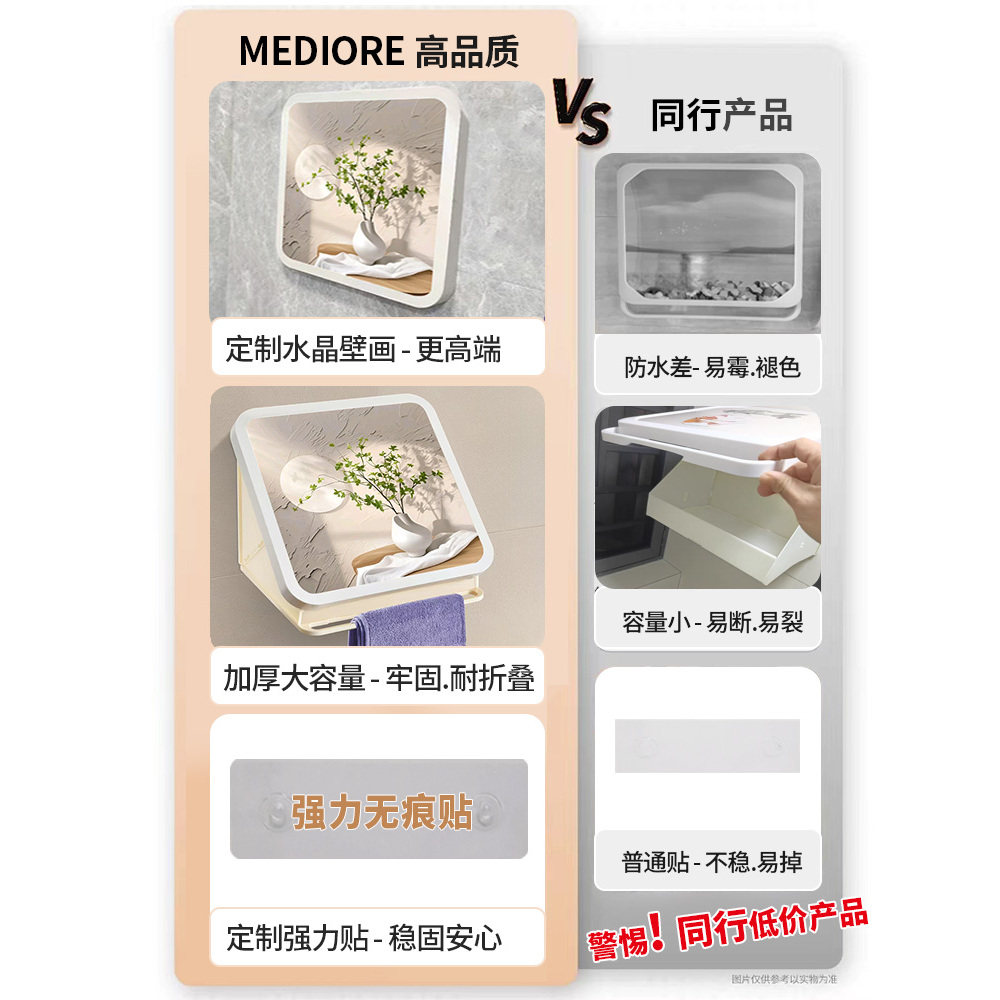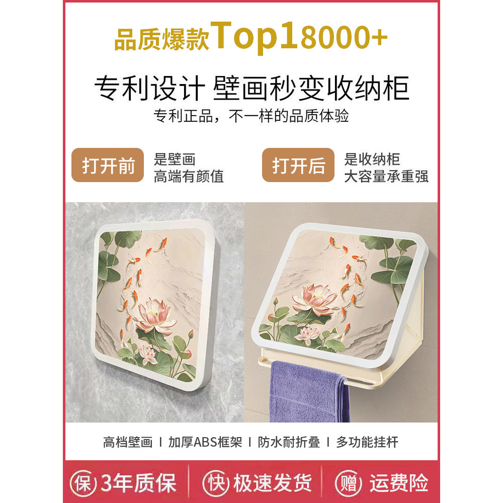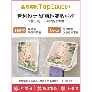 高端浴室壁画收纳柜洗澡放衣服防水卫生间折叠置物架储物柜免打孔