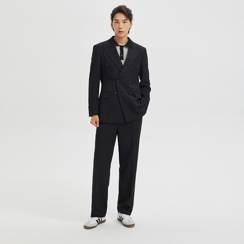 西裤 老钱风男士 商务正装 浪登宽松黑色高级西装 子 长裤 抗皱双褶