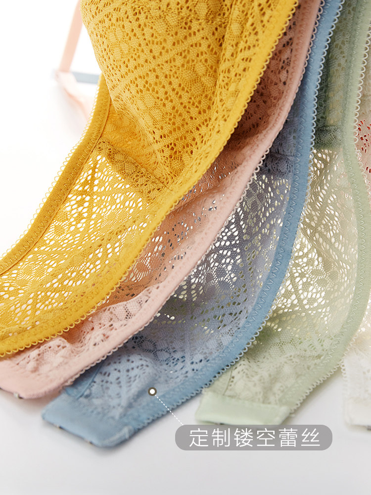真丝内衣女法式 镂空蕾丝小胸聚拢蚕丝文胸 三角杯无钢圈舒适超薄款
