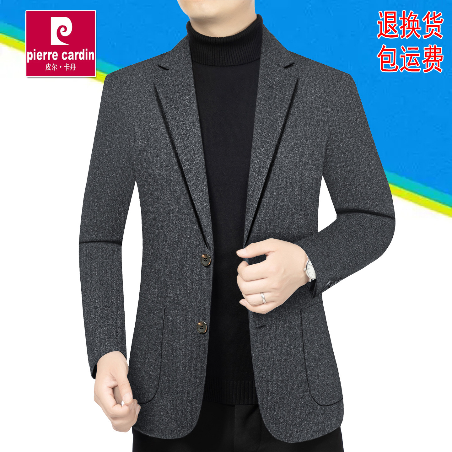 休闲西装 西服中年商务爸爸装 春秋季 毛呢外套薄款 新款 皮尔卡丹男士