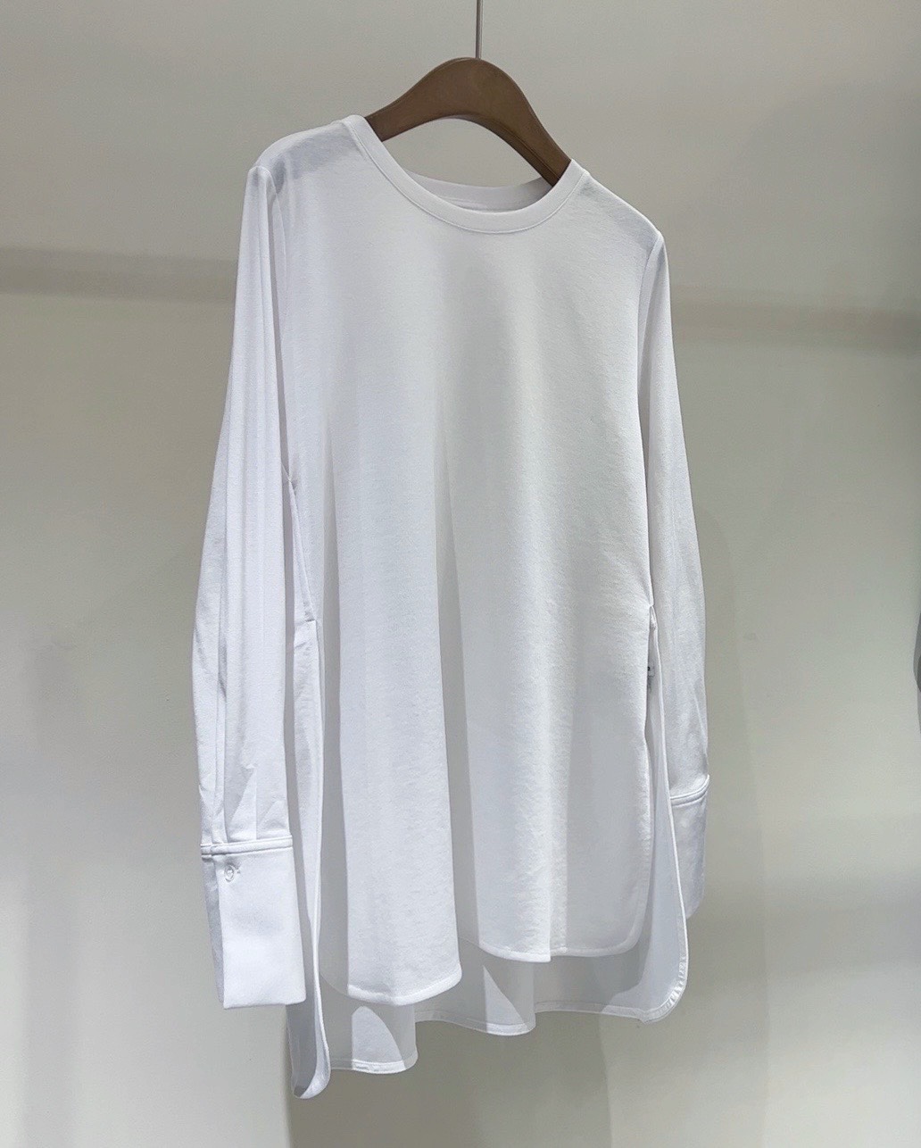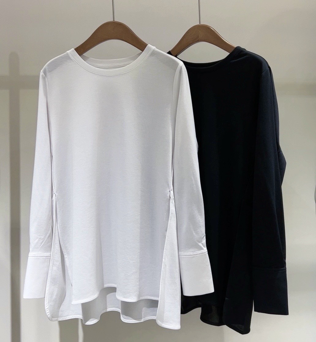 面料好 设计感宽松长袖 舒适丝滑 侧开叉 T恤女秋 时尚 一万个推荐