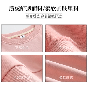 宽松白色春秋上衣女款 薄款 卫衣女无帽小个子粉色2023新款 圆领短款