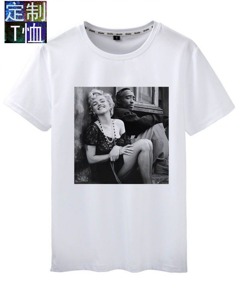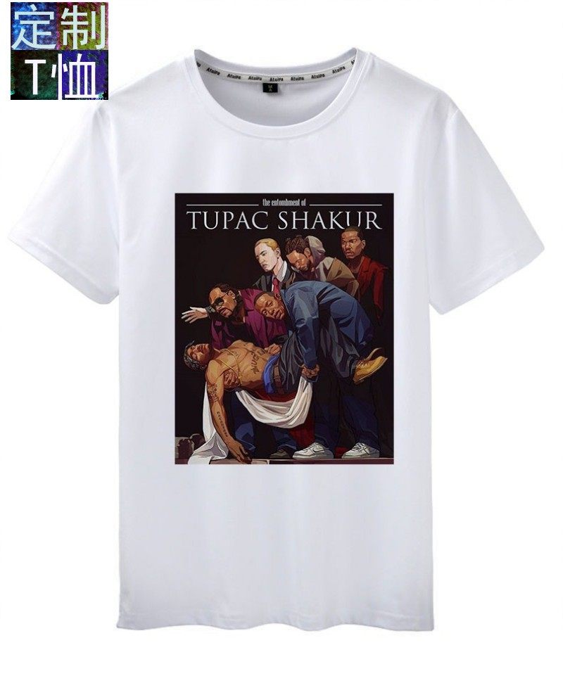 男女夏街头滑板嘻哈说唱hiphop shirt2PAC乐队摇滚T恤短袖