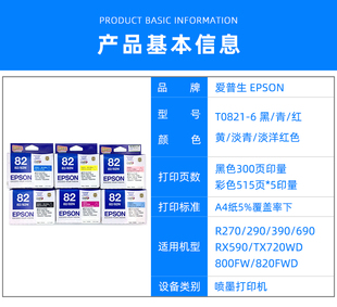 82N 爱普生82N墨盒 黑色 r290 R390 t50 T0821墨盒 EPSON 打印机墨盒 原装 820 爱普生r270墨盒
