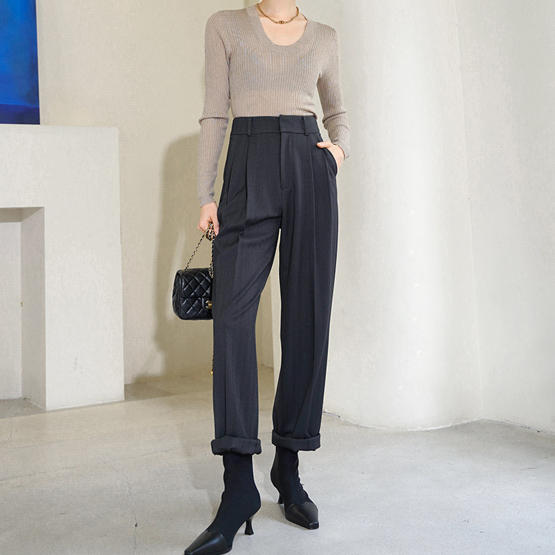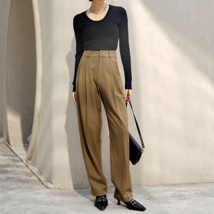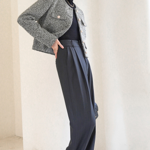 羊毛西裤 GUS 宽松直筒灰色休闲长裤 裤 原创设计感老钱锥形高腰西装