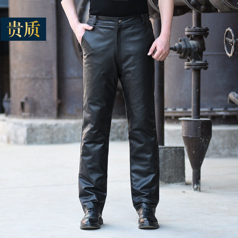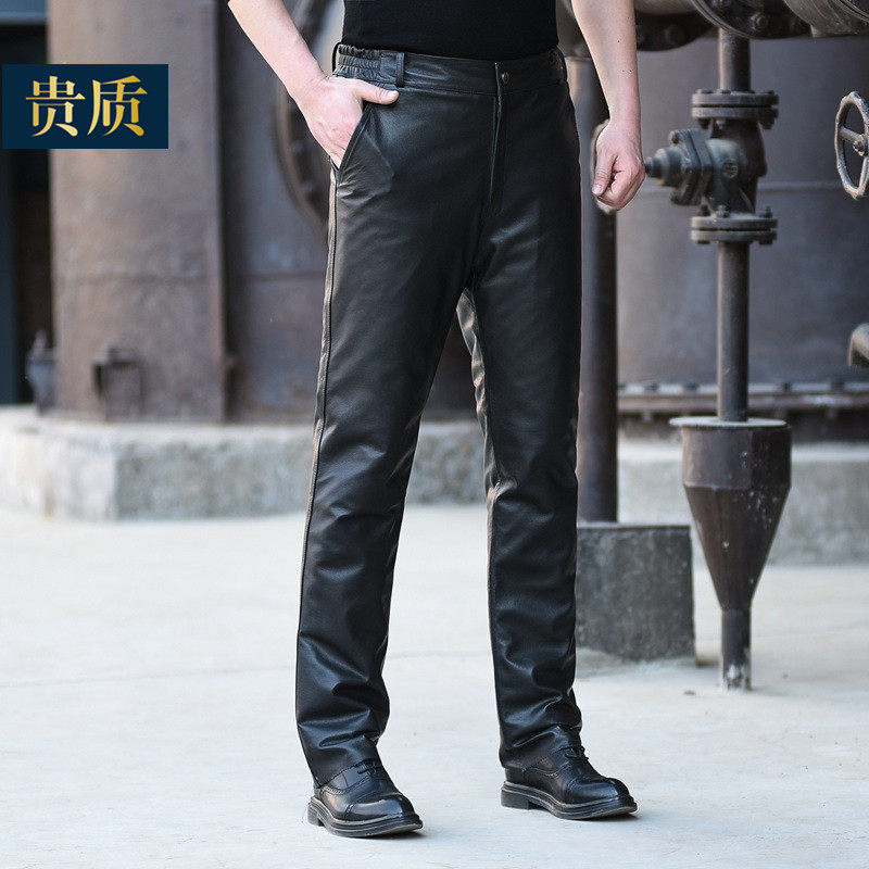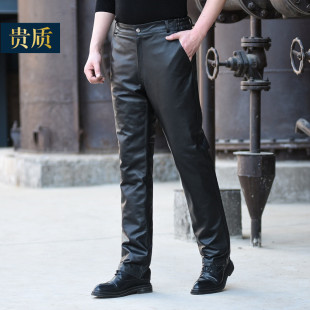 海宁真皮皮裤 保暖皮毛一体 男头层牛皮加绒加厚机车宽松摩托车男士