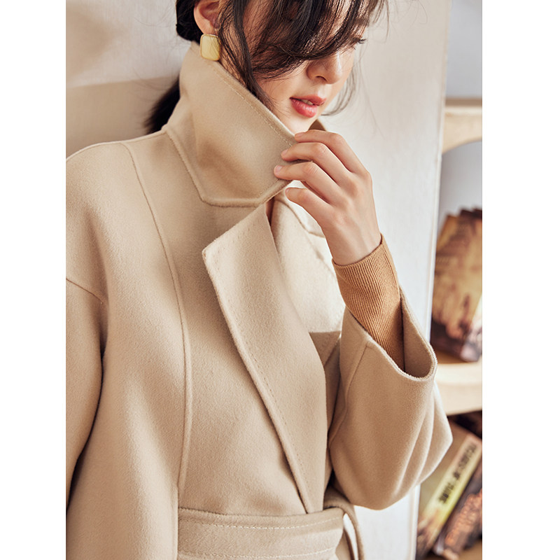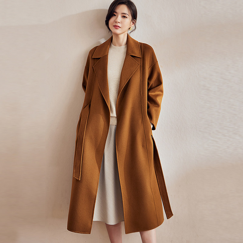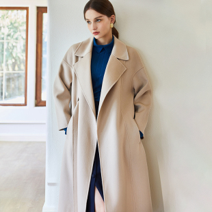 罗衣轻奢8.2%山羊绒双面呢大衣女冬新款 OL保暖中长毛呢外套05099