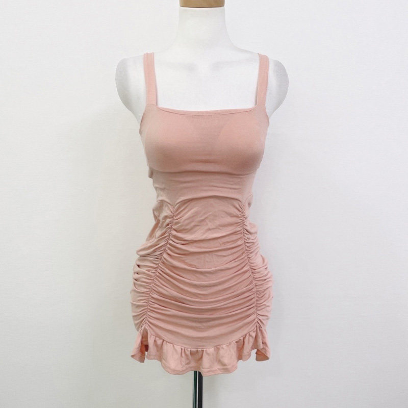 性感女人味显胸褶皱包臀无袖 YK310粉嫩系 连衣裙se 正品 韩国代购
