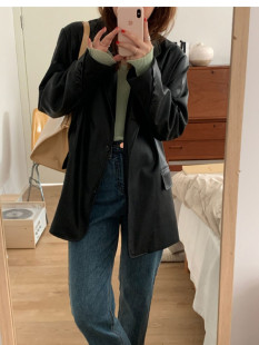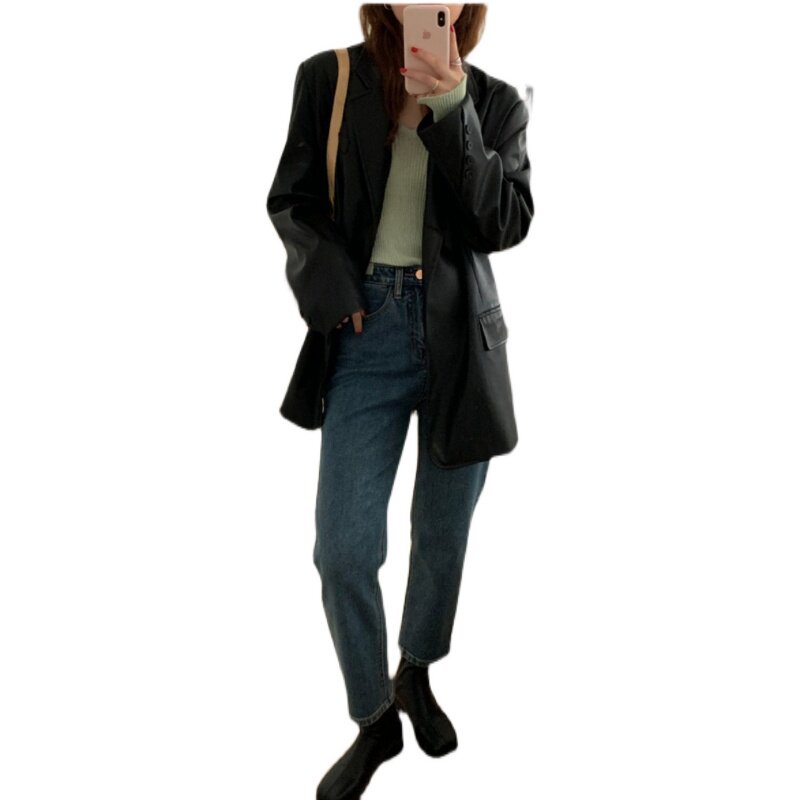 韩版 新款 宽松显瘦复古港味上衣黑色 皮衣外套女2025春秋季 棕色西装