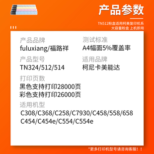 C558 658碳粉盒Bizhub柯美C554 C308 适用美能达C368粉盒TN512 7930墨盒TN324震旦ADC367 C458 C258 307 C454