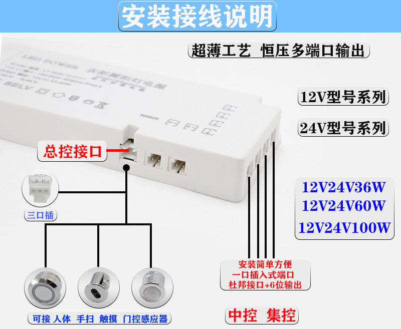 led超薄灯箱电源12v24v长条电源开关300w220v转12v灯条变压转换器