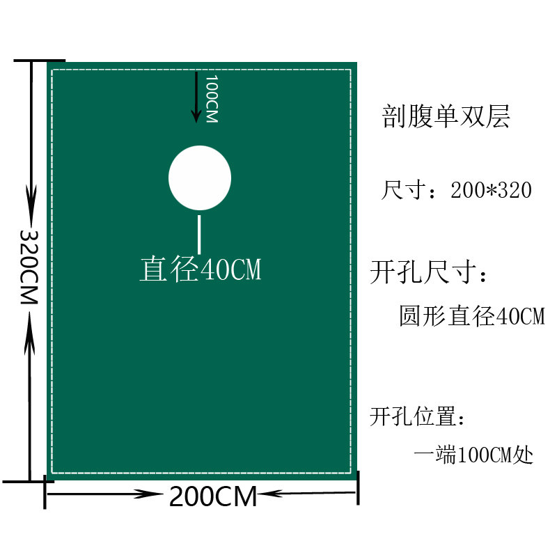 手术室剖腹单洞巾纯棉墨绿色面部整形孔巾口腔牙科手术室包布双层