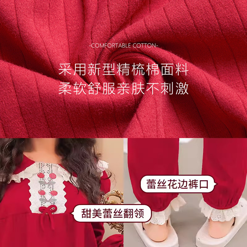 家居服 可爱公主风红色本命年秋冬季 2025年新款 纯棉睡衣女春秋套装