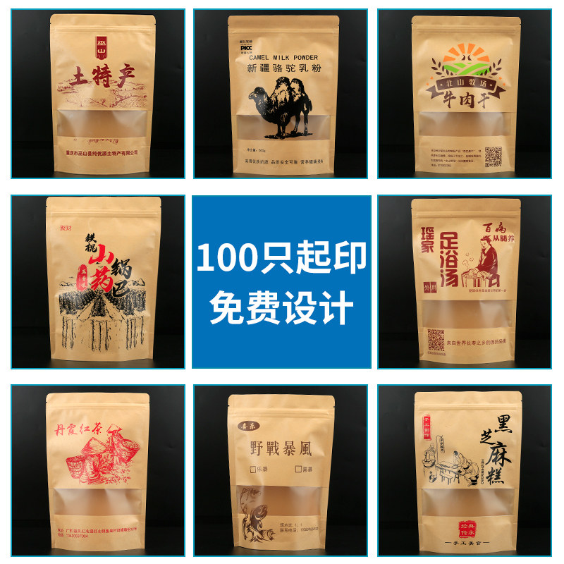 开窗牛皮纸袋自封袋食品袋加厚茶叶干果零食样品袋密封包装 袋定制