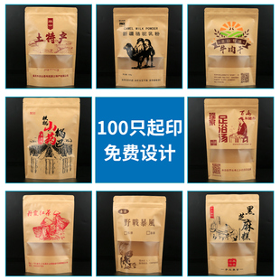 定制牛皮纸袋自封袋磨砂开窗封口袋食品茶叶加厚防水密封袋包装 袋