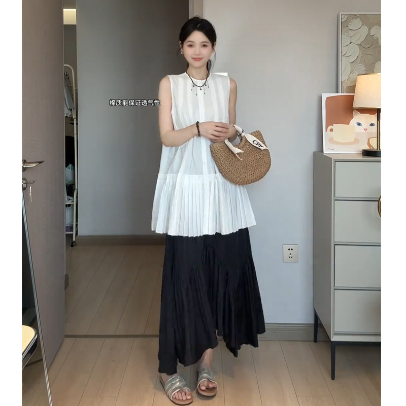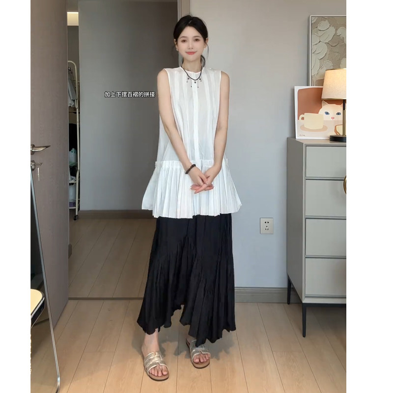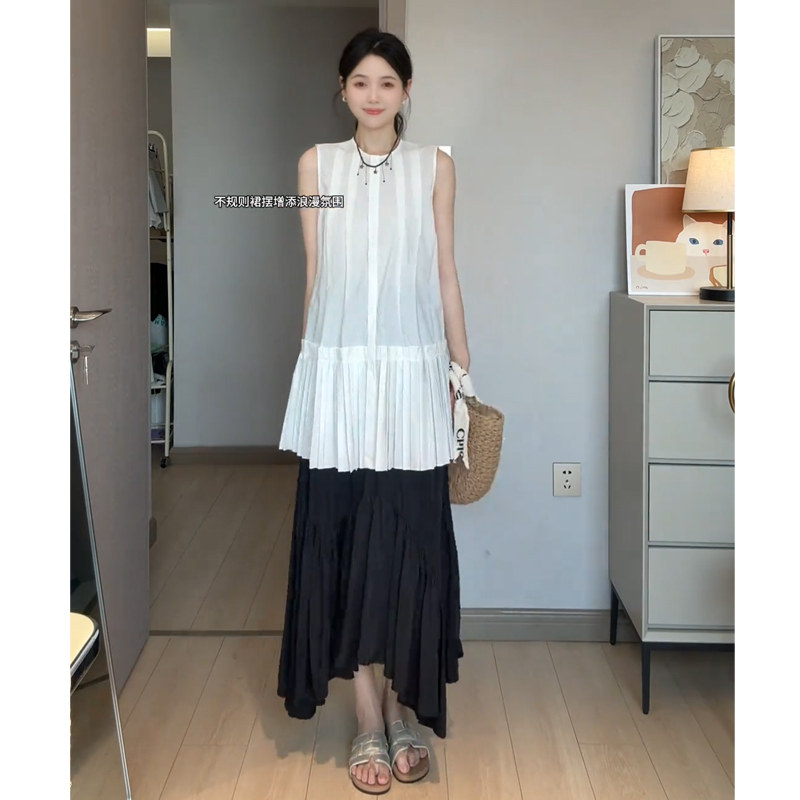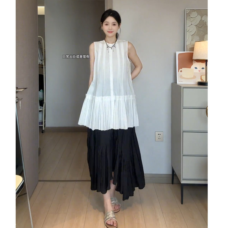 夏季 百搭气质无袖 常规上衣圆领百褶减龄高腰中长裙 STUDIO 向晚意