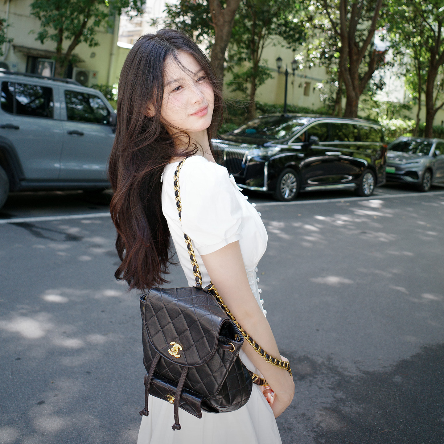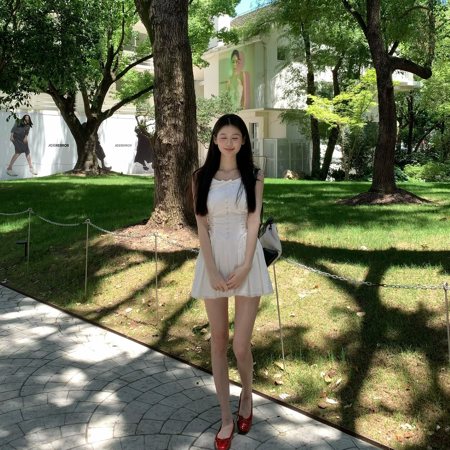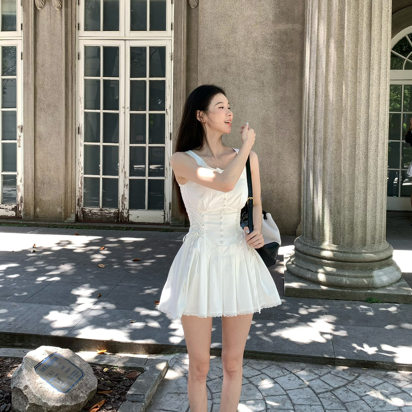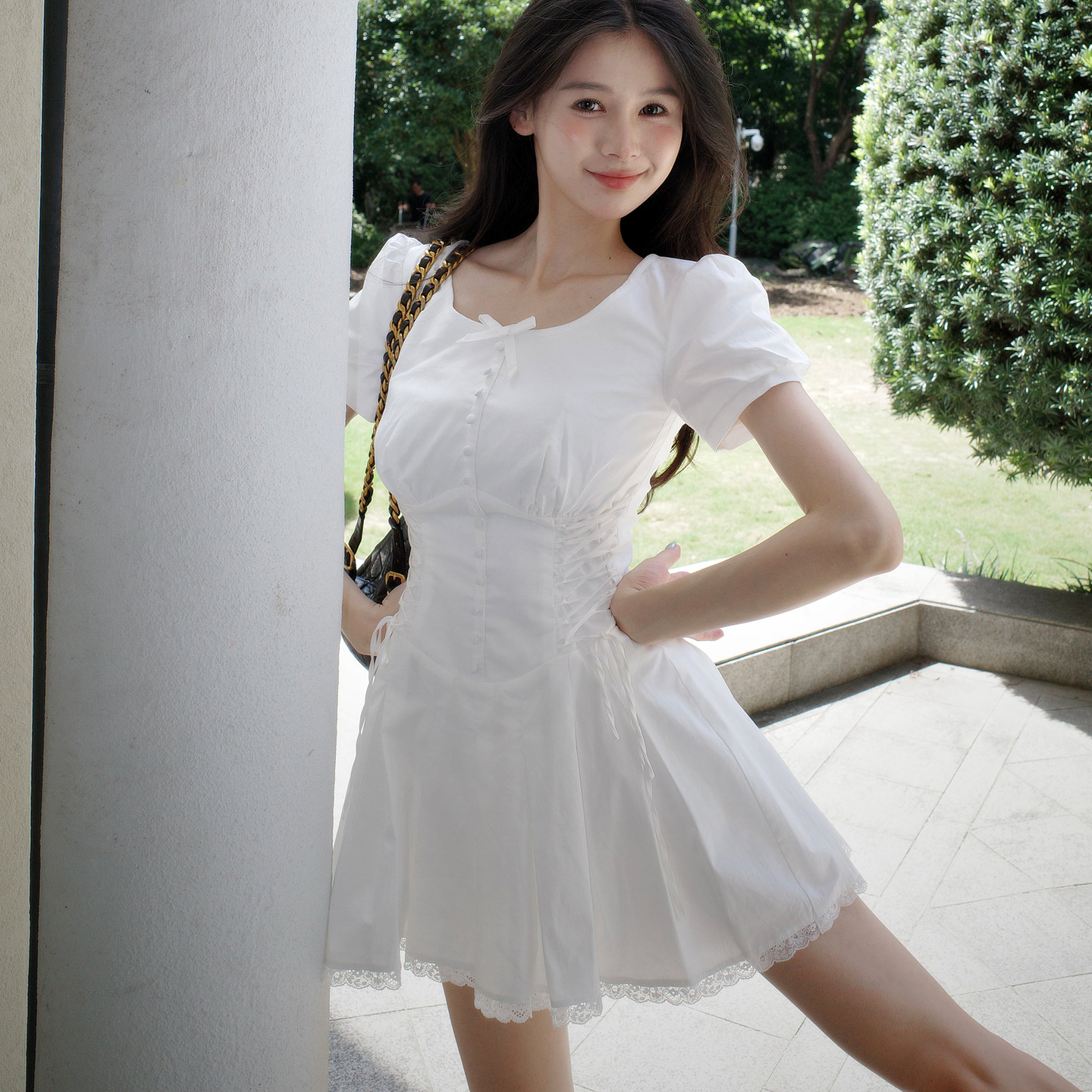 Lienni2025夏季 立体剪裁收腰显瘦绑带双层吊带小白连衣裙女 新款
