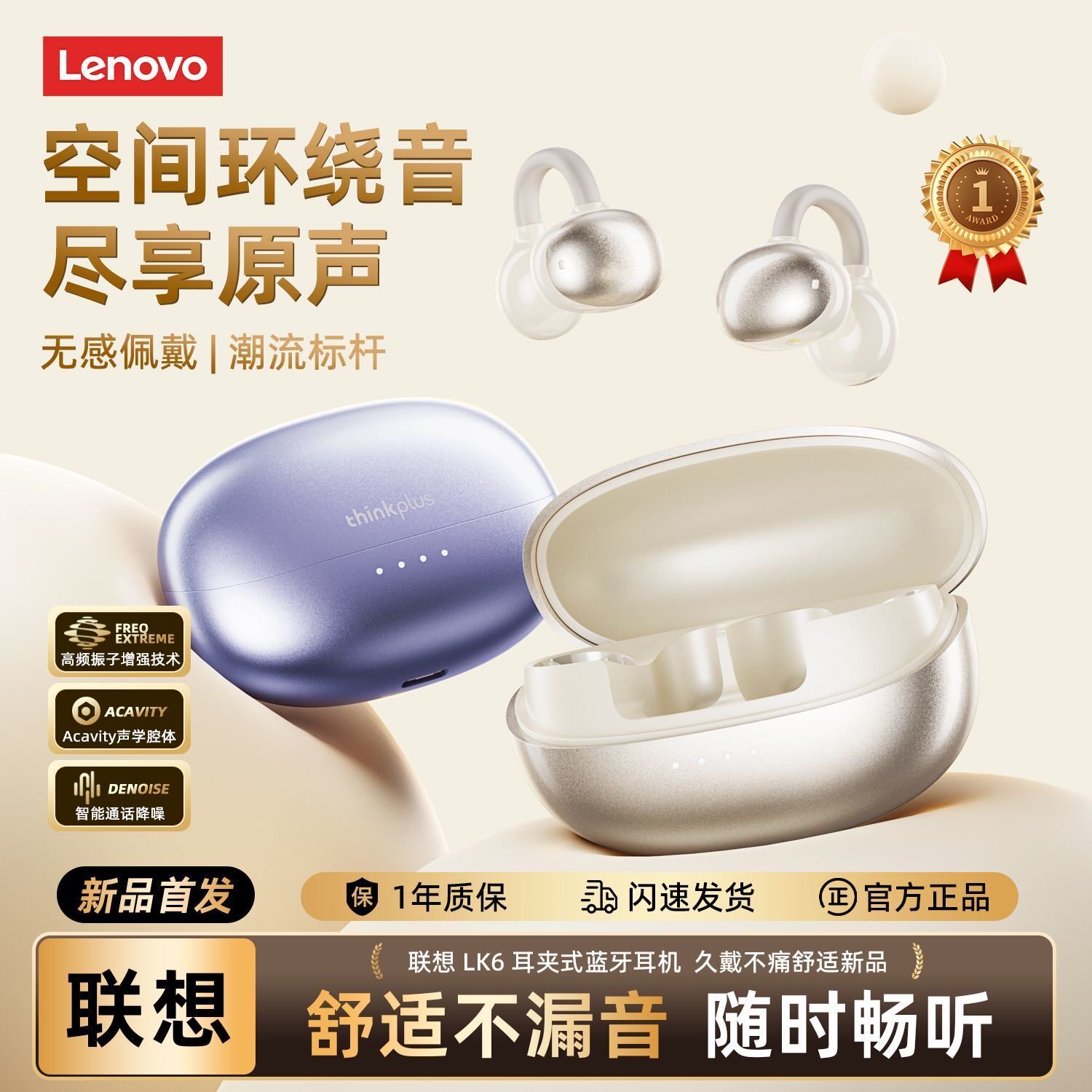 联想LK6耳夹式 运动跑步挂耳甩不掉气骨传导不入耳 蓝牙耳机开放式