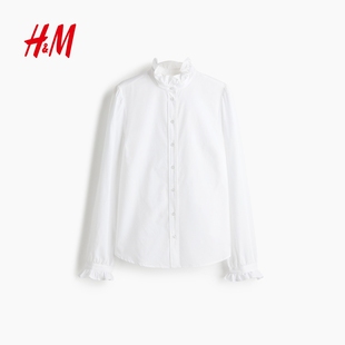 衬衫 潮流简约气质荷叶边领口衬衫 2025冬季 时尚 1295517 新款 HM女装