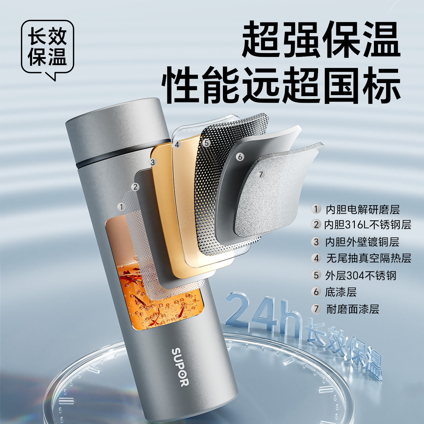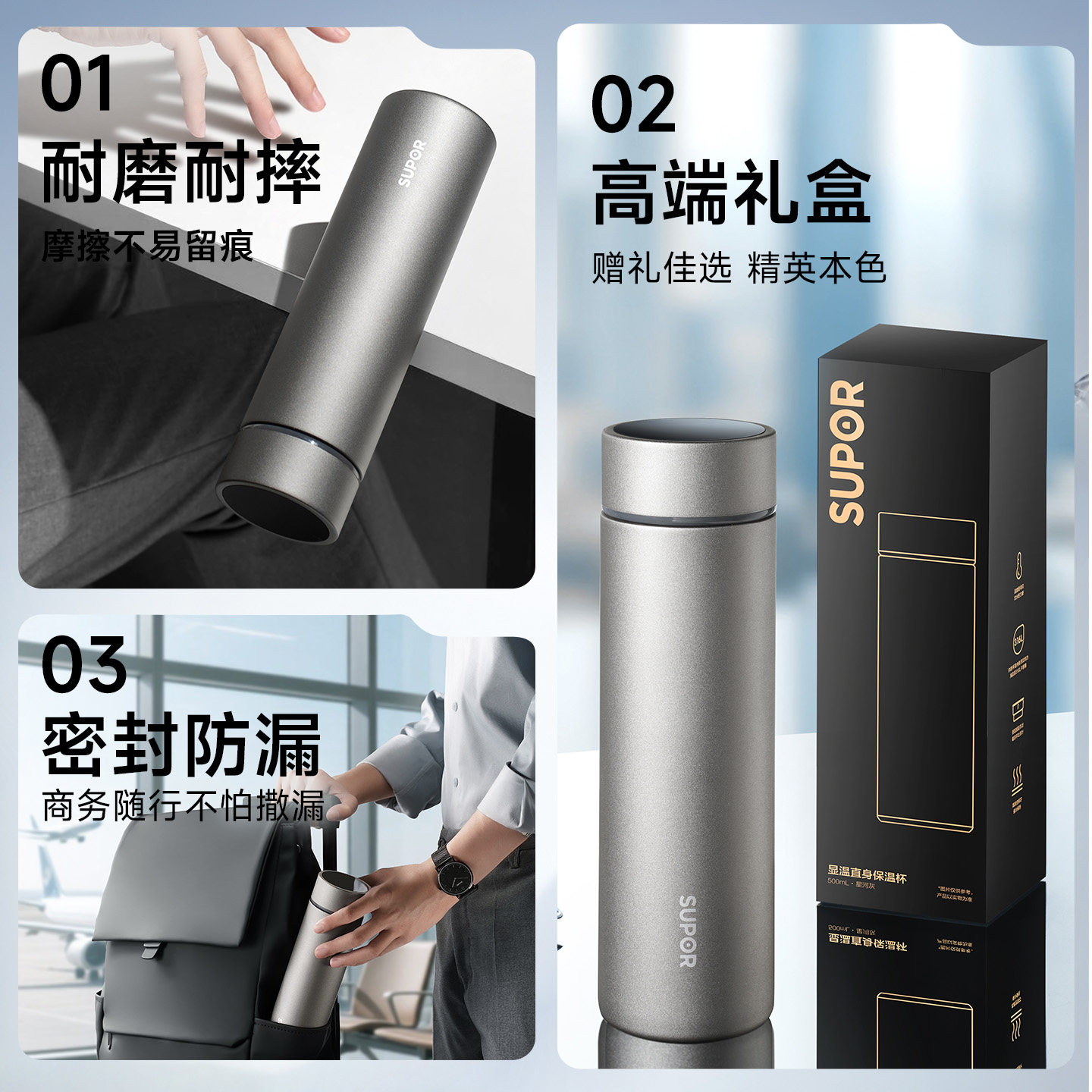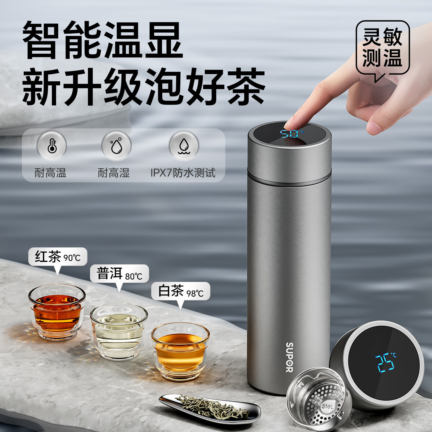 苏泊尔保温杯智能显温大容量男款 女士高档不锈钢泡茶水杯2025新款
