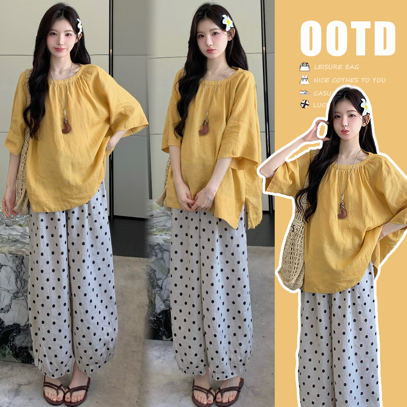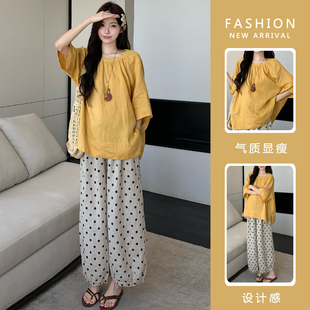 洋气孕妇套装 圆领百搭上衣宽松波点裤 新款 短袖 两件套 2025套装 时尚