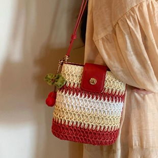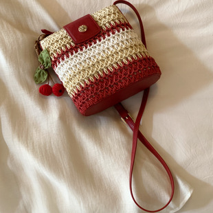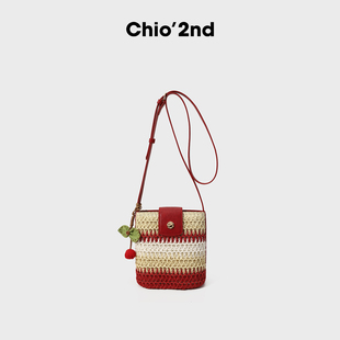 南风Chio2nd 罗姆舞会水桶包包女秋冬拼色海边编织包单肩斜挎小包