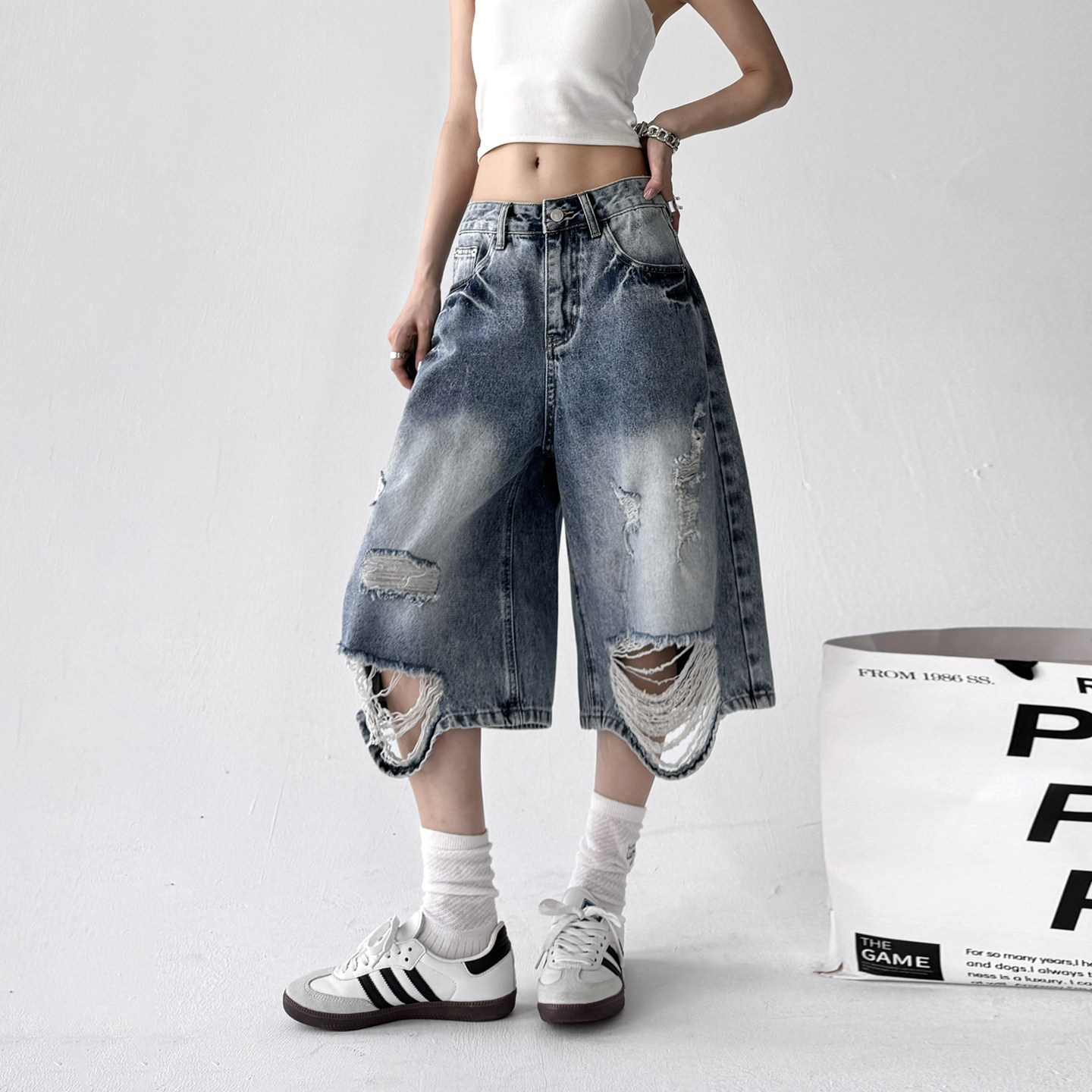 女高腰宽松休闲运动百搭阔腿裤 2026夏季 设计感显瘦七分裤 美式 新款