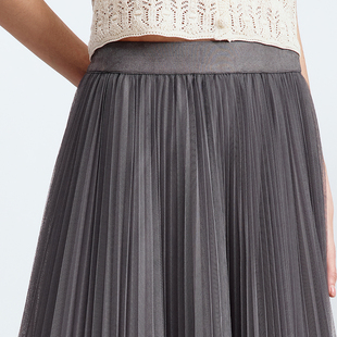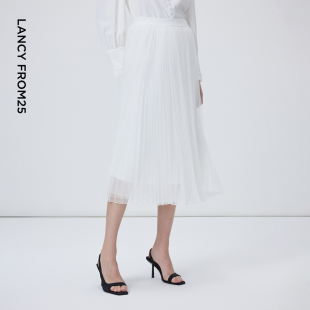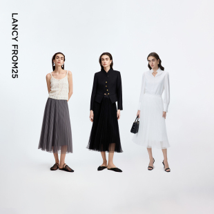 朗姿25a字百褶裙网纱大摆气质通勤垂感高级感半身裙春秋新款