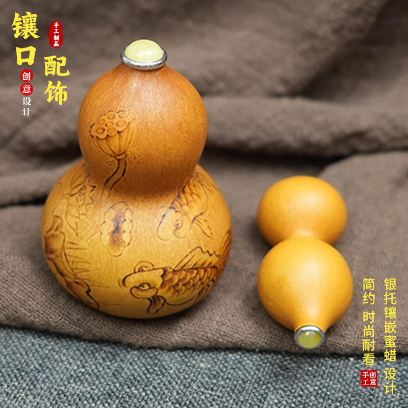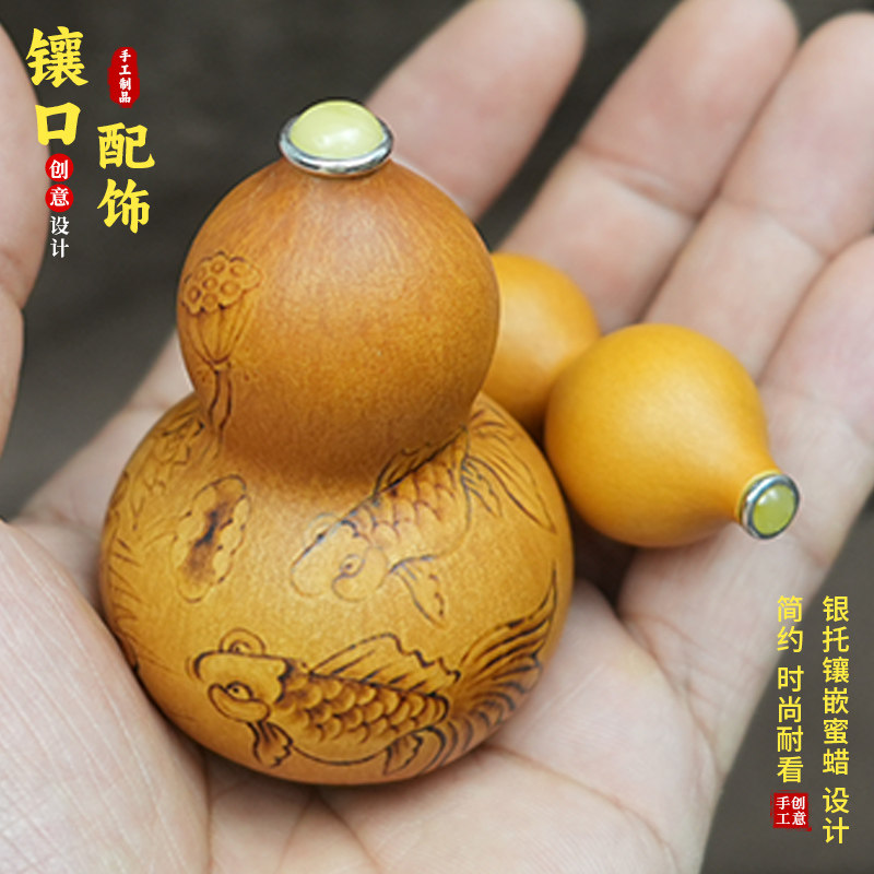 文玩小葫芦镶口配饰高端S925银镶嵌蜜蜡蛋面手把件工艺品盖帽塞子