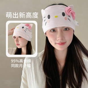 婧麒月子帽春夏透气纯棉孕妇帽月子发带大头围防风护额坐月子用品