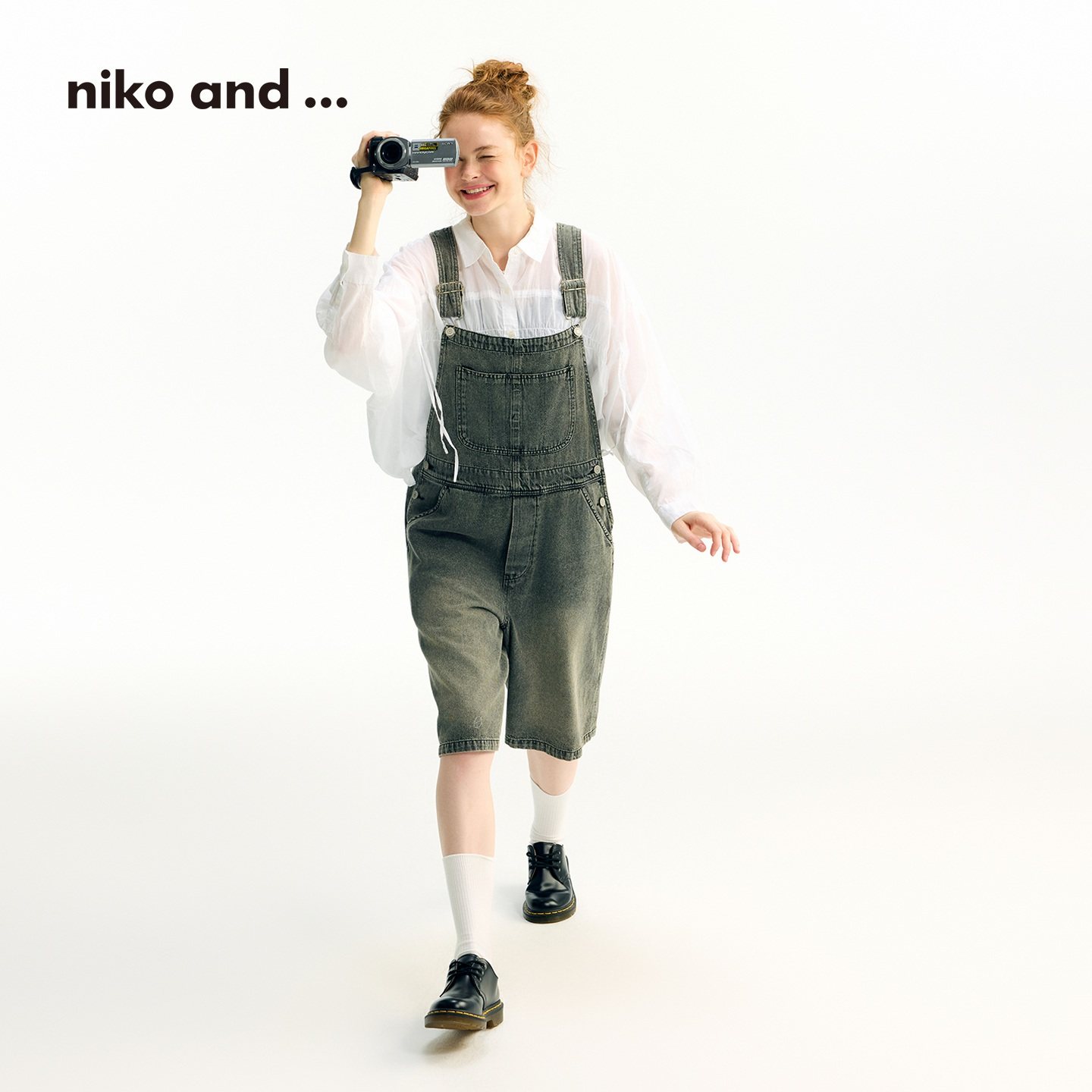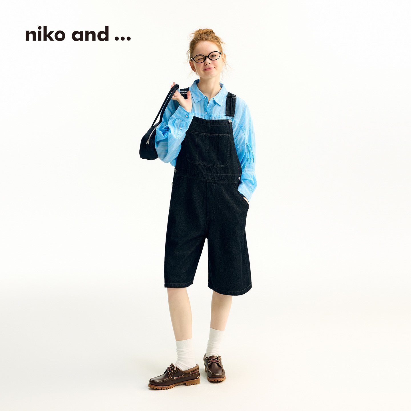 女2025年夏季 ...背带裤 新款 棉质中裤 496324 niko 牛仔背带裤 and