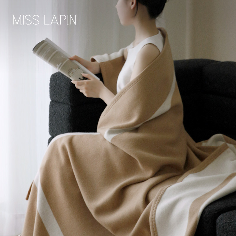 澜品 办公室午睡毯空调毯沙发毯车用盖毯 北欧极简风纯羊毛毯子