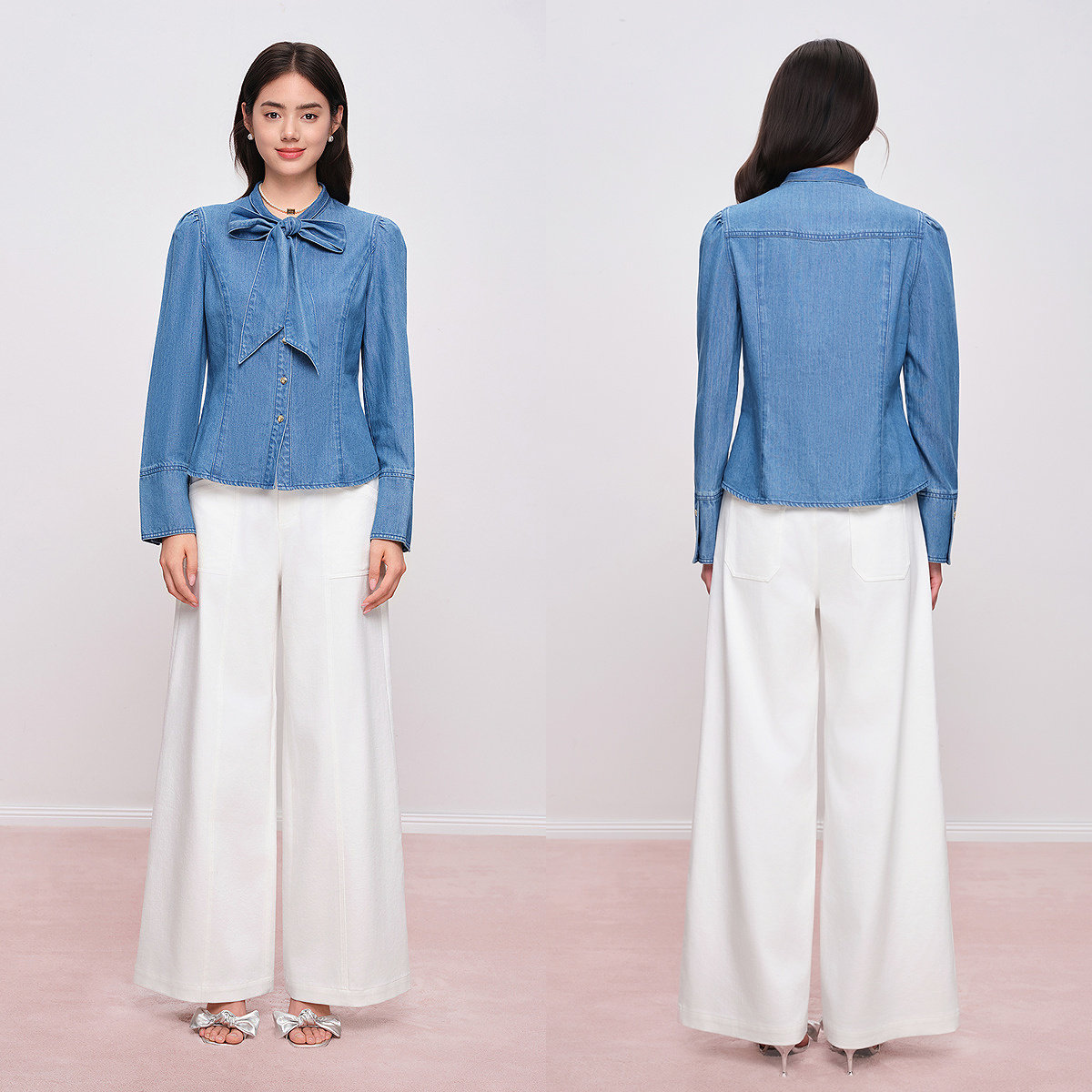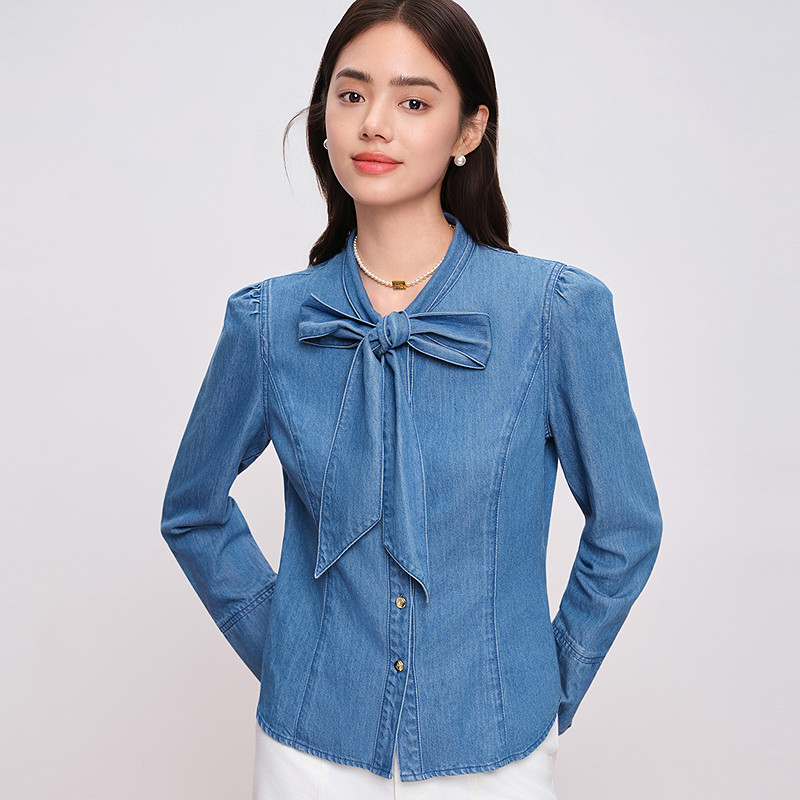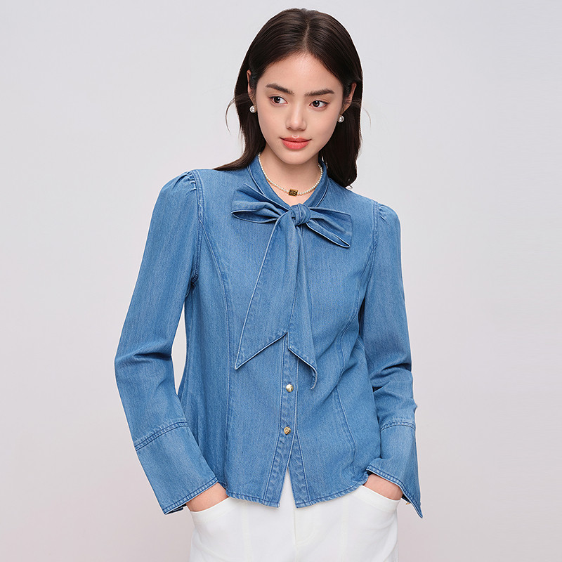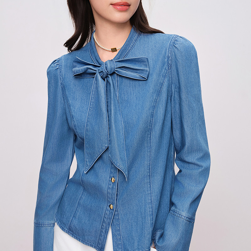 甜酷风上衣DOUBLOVE贝爱25早秋新款 天丝牛仔衬衫 舒软肤感单宁