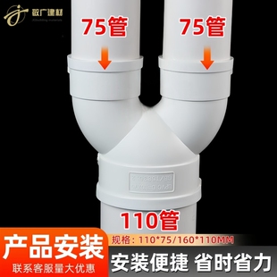 y三通PVC变径三通国标加厚U型三通110 75新风管道三通排水管配件