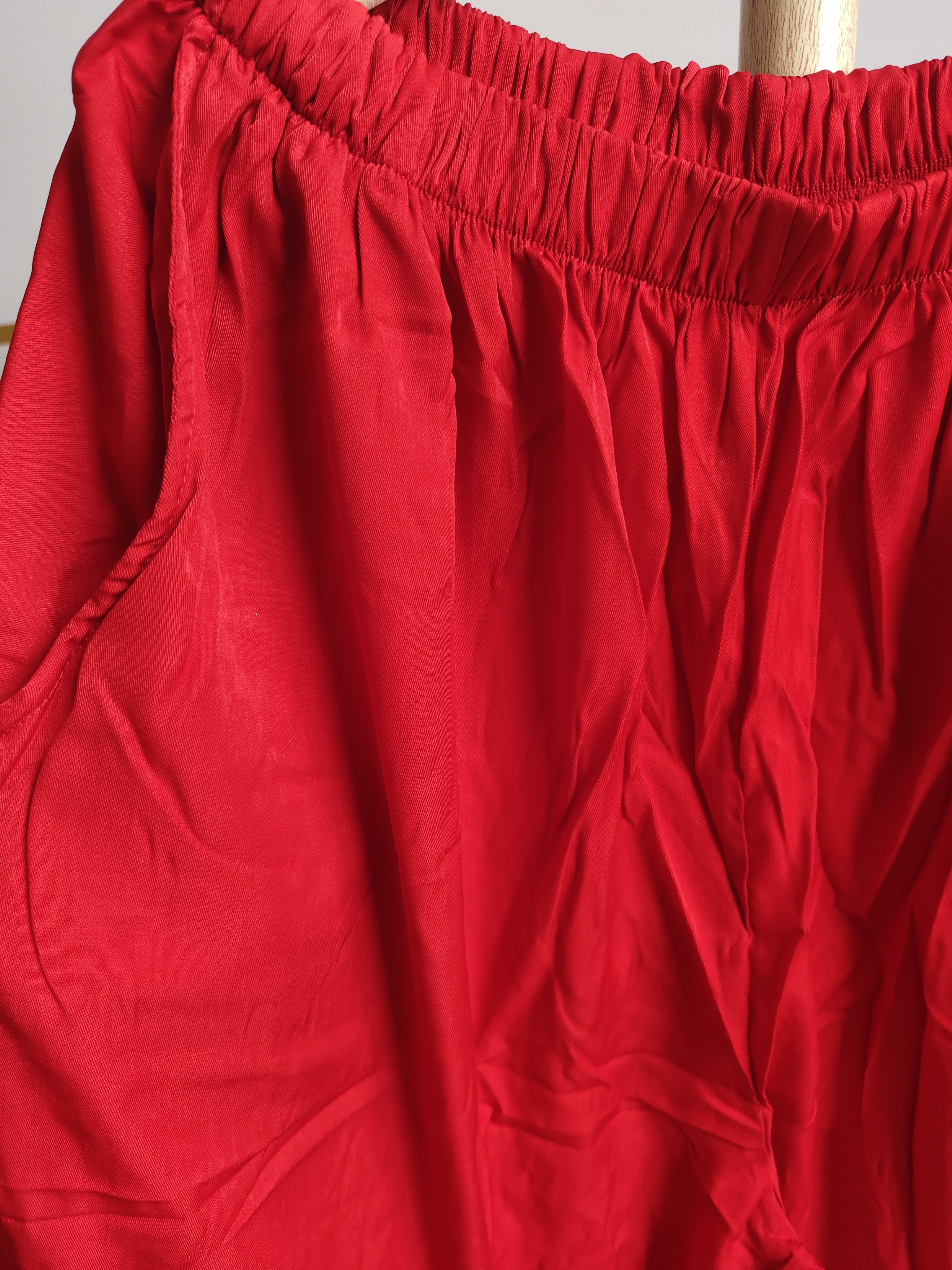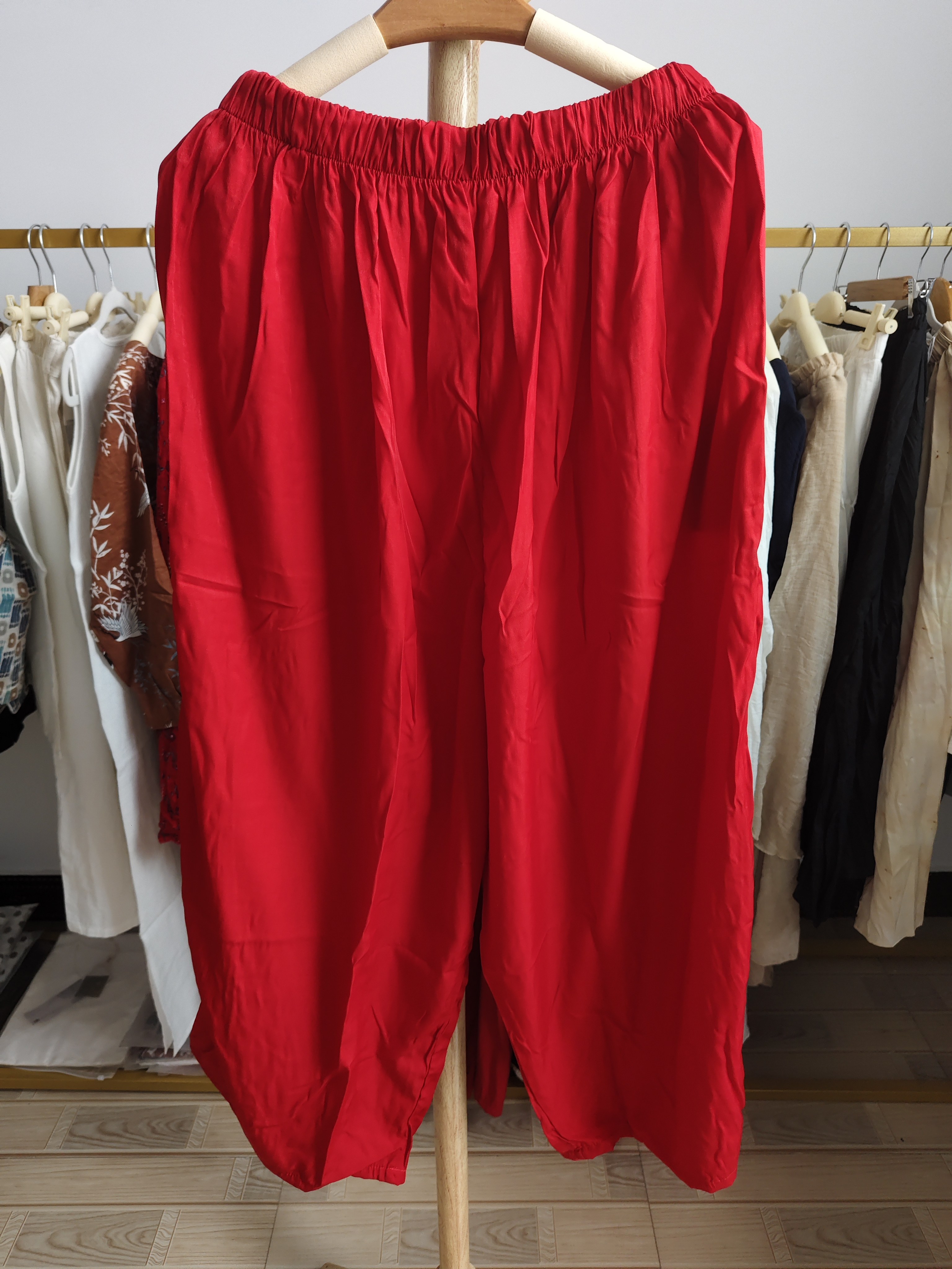 清 腰70 大红色顺滑缎面阔腿裤 臀围160长95 100 女宽松休闲裤 特价