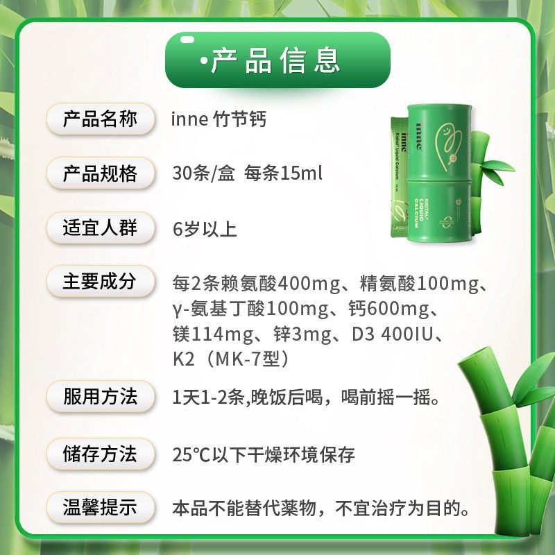 inne因你竹节钙赖氨酸钙镁锌生长素儿童青少年成长液体钙苹果味