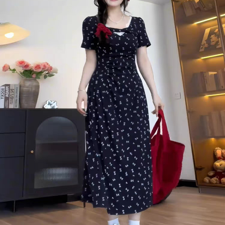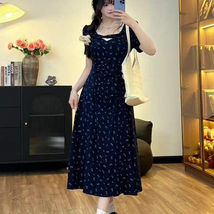 高级感收腰显瘦a字长裙子 甜美碎花连衣裙女2025夏季 大码 胖mm法式