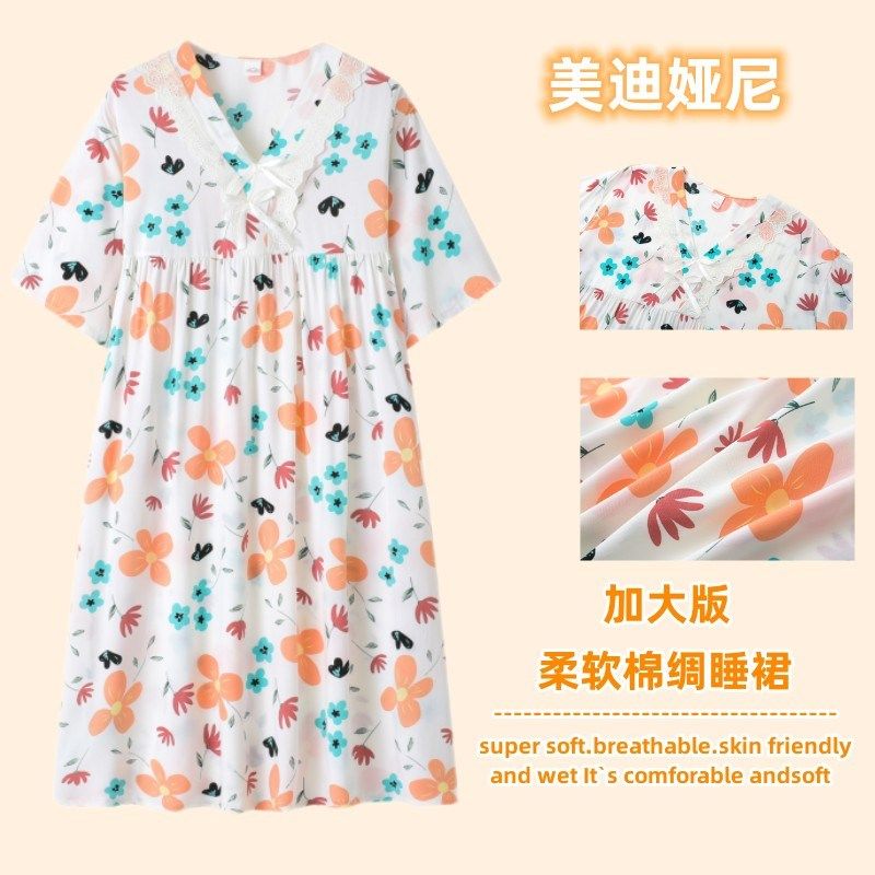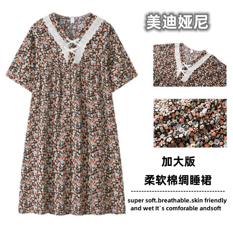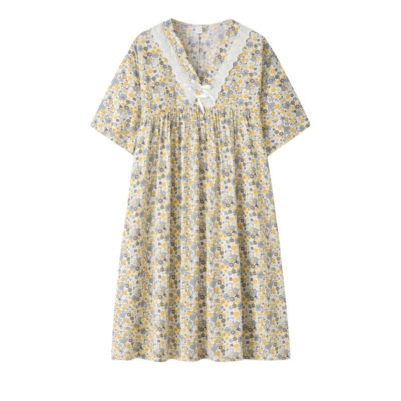红豆居家睡衣纯棉家居服短袖 女士春秋款 清仓 睡裙特惠夏季 断码