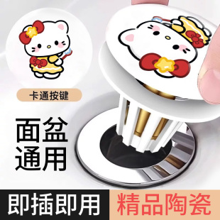 KT陶瓷弹跳芯卡通陶瓷洗脸盆漏水塞卫生间洗手盆下水器创意弹跳芯
