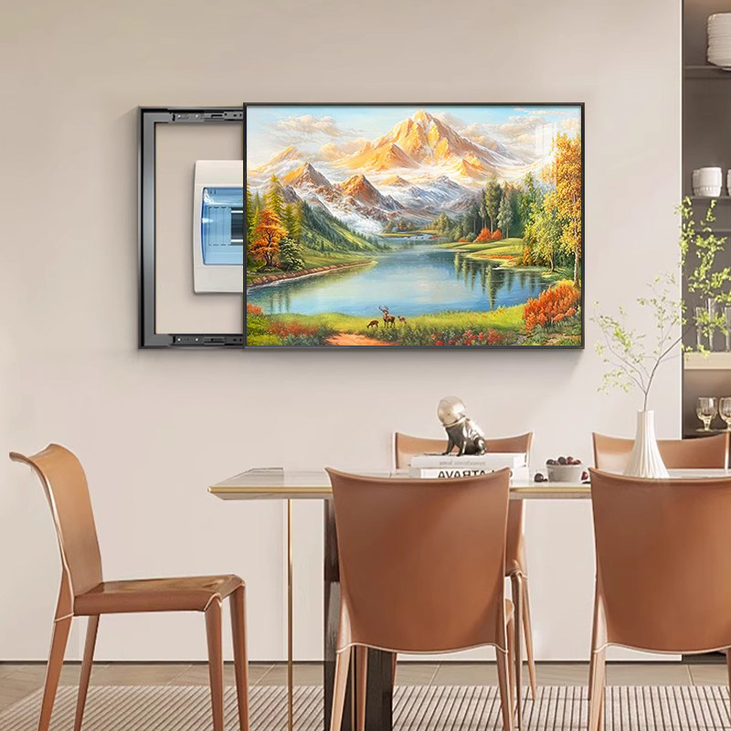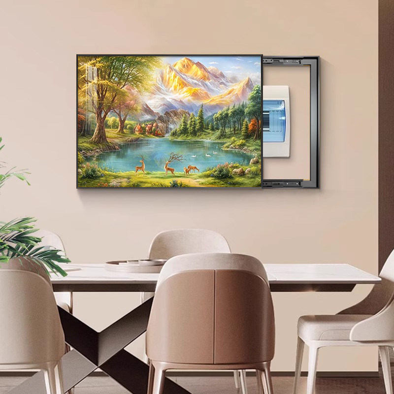 聚宝盆电表箱装 饰画山水风景油画遮挡配电箱电源总开关挂画高级感