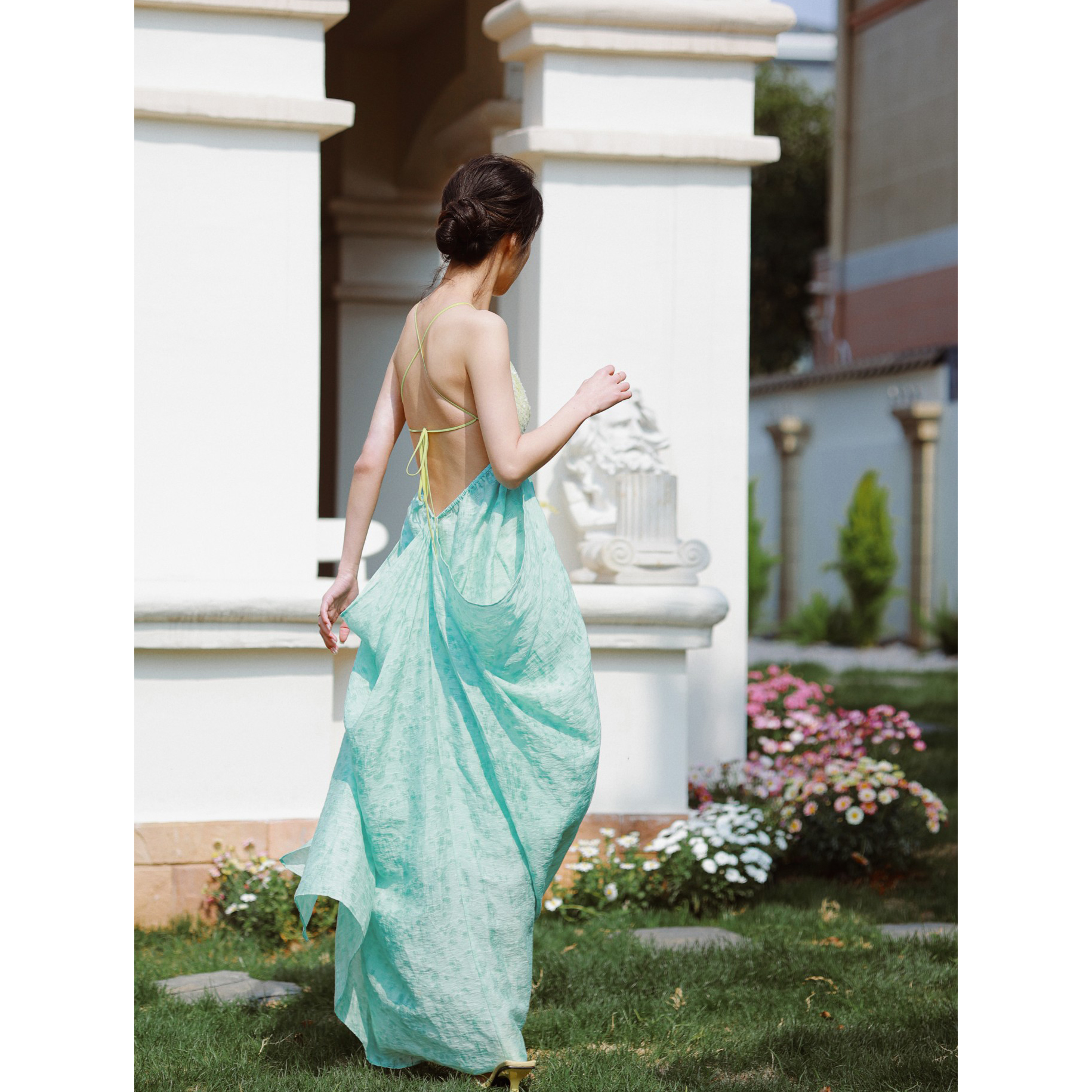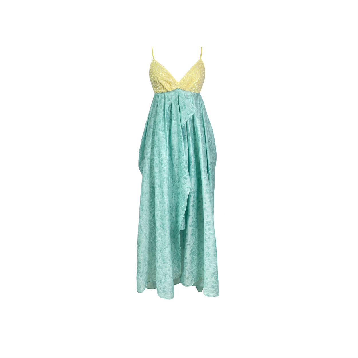 25SS MIURA 曼波薄荷拼接黄色亮片露背连衣裙 MOOD
