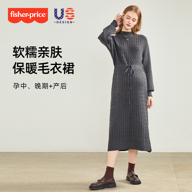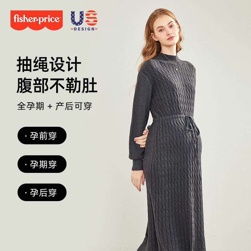 法式 时尚 麻花针织裙秋冬孕妇裙子 秋季 美国费雪孕妇连衣裙2025新款