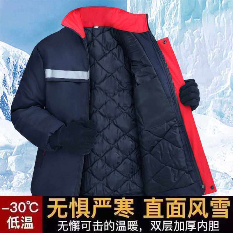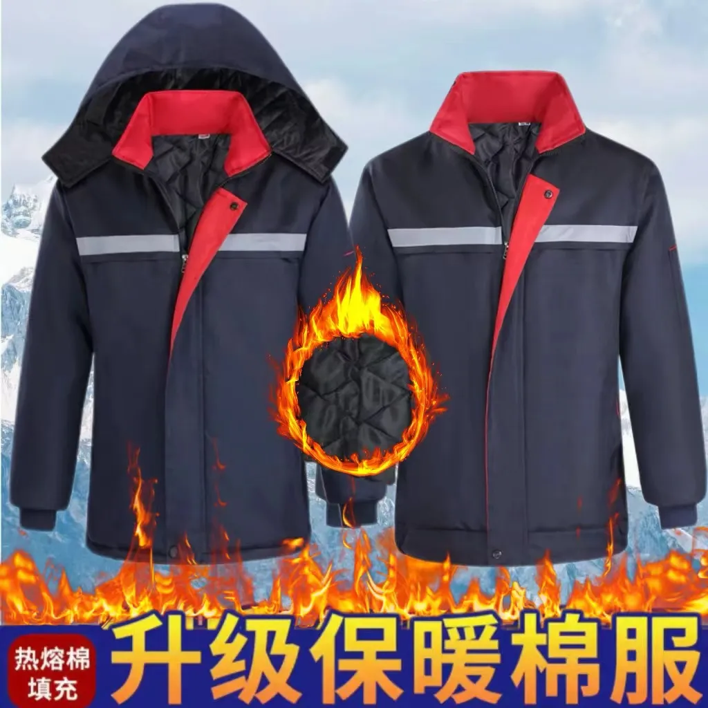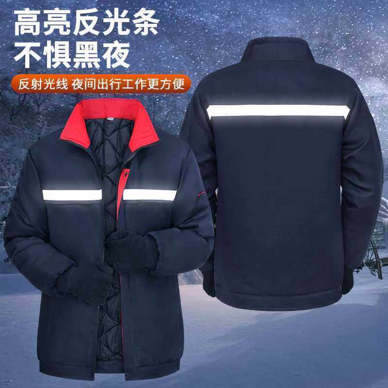 棉服劳保冬季 棉袄加厚保暖反光条工作服汽修工地车间保安棉衣套装